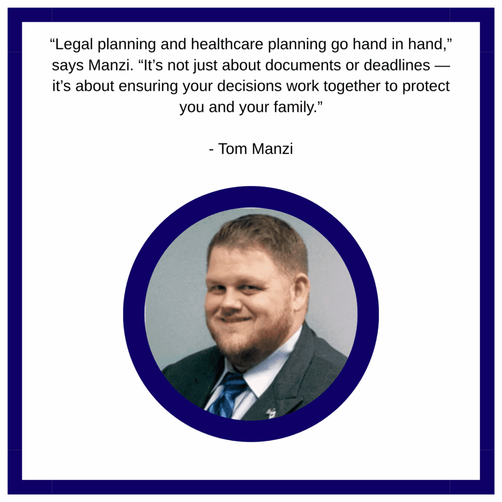 That’s where attorney Thomas Manzi often steps in. “When a spouse passes away, there are not just emotional decisions to navigate, but legal and financial ones too,” says Tom. “Beneficiary designations, power of attorney documents, and healthcare proxies should all be reviewed alongside Medicare elections.”